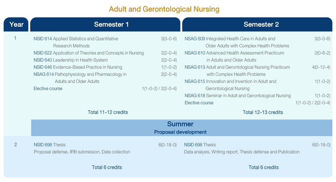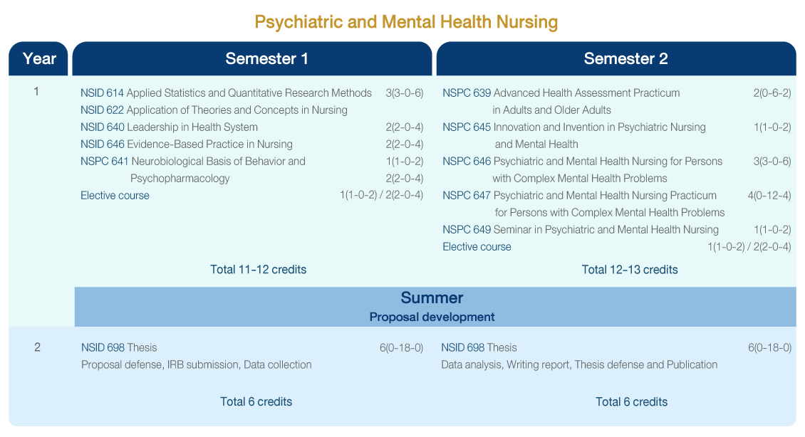 Note: 1) Students may take additional courses with non-credits offered by Mahidol University or elsewhere as suggested by thesis advisors.