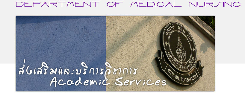 The Department of Medical Nursing also has a policy in reinforcing the staffs to provide educational services in many aspects. Examples of educational service activities are as follows: