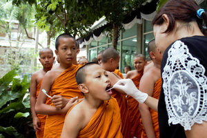 เมื่อวันที่ 25 สิงหาคม 2560 คณะพยาบาลศาสตร์ มหาวิทยาลัยมหิดล จัดกิจกรรม “การพัฒนาผู้นำ (สามเณรแกนนำ) และการเตรียมความพร้อมในการดูแลสุขภาพช่องปากในสามเณร” เพื่อติดตามผลจากการดำเนินการจัดกิจกรรมฯ เมื่อวันที่ 27 พฤษภาคม 2560 ที่ผ่านมา โดยในครั้งนี้ได้จัดการประกวดสุขภาพปากและฟันแก่สามเณรทุกชั้นปี ณ โรงเรียนวัดไผ่ดำ อ.อินทร์บุรี จ.สิงห์บุรี ซึ่งมีคณาจารย์จากภาควิชาการพยาบาลศัลยศาสตร์ คณะพยาบาลศาสตร์ มหาวิทยาลัยมหิดล และทันตแพทย์ จากคณะทันตแพทยศาสตร์ มหาวิทยาลัยมหิดล เป็นกรรมการตัดสินการประกวด