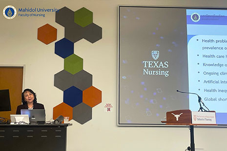 เมื่อวันที่ 24 กันยายน 2568 รองศาสตราจารย์ ดร.เอมพร รตินธร คณบดีคณะพยาบาลศาสตร์ มหาวิทยาลัยมหิดล ได้รับเกียรติเป็นวิทยากรคนสำคัญในงานประชุมวิชาการ The 2nd Annual State of Nursing Science: Endowed Lectureship Symposium ซึ่งจัดขึ้นโดยวิทยาลัยพยาบาลศาสตร์ มหาวิทยาลัยเท็กซัส ออสติน (University of Texas at Austin School of Nursing) ในงานดังกล่าว รองศาสตราจารย์ ดร.เอมพร รตินธร คณบดีคณะพยาบาลศาสตร์ มหาวิทยาลัยมหิดล ได้กล่าวปาฐกถาพิเศษในหัวข้อ “การนำอนาคตของการพยาบาล: ขับเคลื่อนคุณค่า, นวัตกรรม, และผลกระทบที่ยั่งยืน” (Leading the Future of Nursing: Driving Value, Innovation, and Lasting Impact) โดยเน้นย้ำถึงบทบาทสำคัญของภาวะผู้นำทางการพยาบาลในการกำหนดทิศทางของการดูแลสุขภาพผ่านนวัตกรรม, การปฏิบัติที่อิงหลักฐานเชิงประจักษ์ และความร่วมมือระดับโลก การบรรยายของท่านยังเน้นถึงความสำคัญของการเตรียมความพร้อมบุคลากรทางการพยาบาลเพื่อรับมือกับความท้าทายด้านสุขภาพที่ซับซ้อน พร้อมทั้งส่งเสริมการดูแลผู้ป่วยอย่างมีจริยธรรม, คำนึงถึงความหลากหลายทางวัฒนธรรม และมุ่งเน้นที่ผู้ป่วยเป็นศูนย์กลาง