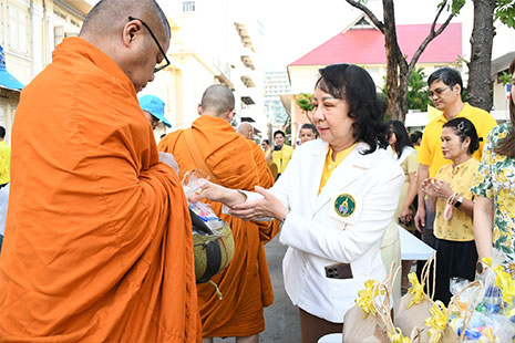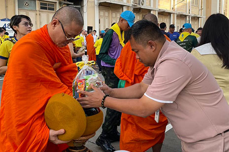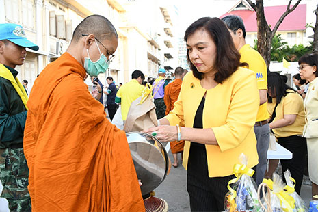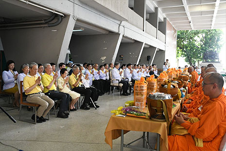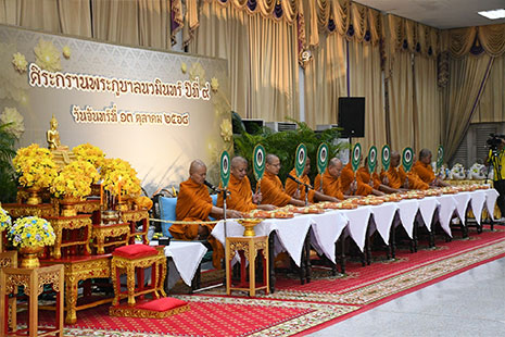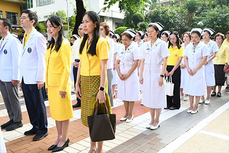 วันที่ 13 ตุลาคม 2568 รองศาสตราจารย์ ดร.เอมพร รตินธร คณบดีคณะพยาบาลศาสตร์ มหาวิทยาลัยมหิดล พร้อมด้วยผู้บริหาร คณาจารย์ และบุคลากรของคณะฯ เข้าร่วมพิธีทำบุญตักบาตรพระสงฆ์ 50 รูป พิธีถวายสักการะฯ พิธีสวดพระพุทธมนต์ และสดัปกรณ์ และพิธีเจริญจิตตภาวนา 89 วินาที อุทิศถวายเป็นพระราชกุศลแด่พระบาทสมเด็จพระบรมชนกาธิเบศร มหาภูมิพลอดุลยเดชมหาราช บรมนาถบพิตร งานศิระกรานพระภูบาลนวมินทร์ ปีที่ 9 ในหลวงผู้ทรงสถิตในดวงใจ เนื่องในวัน “วันนวมินทรมหาราช” เพื่อเป็นการน้อมรำลึกถึงพระมหากรุณาธิคุณที่ทรงมีต่อวงการแพทย์ การสาธารณสุข จัดโดยคณะแพทยศาสตร์ศิริราชพยาบาล มหาวิทยาลัยมหิดล ณ บริเวณโรงพยาบาลศิริราช