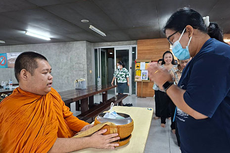 บรรยากาศในงานเต็มไปด้วยความอบอุ่นและความตั้งใจของคณาจารย์ บุคลากร และนักศึกษา ที่มาร่วมกันตักบาตรพระสงฆ์ พร้อมถวายปัจจัยและอาหารแห้ง เพื่อความเป็นสิริมงคลและเริ่มต้นเดือนใหม่อย่างราบรื่น นอกจากนี้ กิจกรรมยังเป็นการสร้างแรงบันดาลใจในการปฏิบัติงานและการเรียน พร้อมกระตุ้นให้เกิดการดูแลใจตนเองและผู้อื่นในชุมชนองค์กร