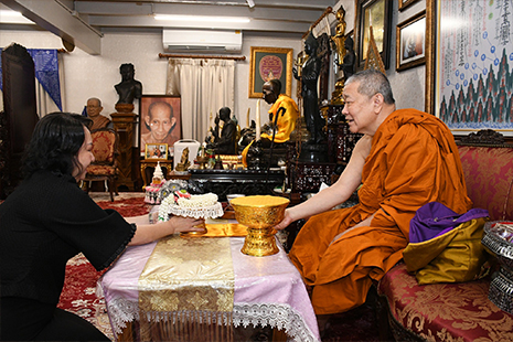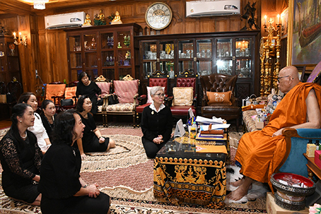 วันที่ 30 ตุลาคม 2568 เวลา 10.00 น. รองศาสตราจารย์ ดร.เอมพร รตินธร คณบดีคณะพยาบาลศาสตร์ มหาวิทยาลัยมหิดล และประธานคณะกรรมการมูลนิธิคณะพยาบาลศาสตร์ มหาวิทยาลัยมหิดลฯ พร้อมด้วย ดร.ทิพย์นารี อมาตยกุล ประธานคณะอนุกรรมการฝ่ายหารายได้มูลนิธิคณะพยาบาลศาสตร์ มหาวิทยาลัยมหิดลฯ รองศาสตราจารย์ถนอมขวัญ ทวีบูรณ์ รองศาสตราจารย์วีรยา จึงสมเจตไพศาล รองศาสตราจารย์ ดร.อรุณรัตน์ ศรีจันทรนิตย์ ผู้ช่วยศาสตราจารย์ ดร.รัตนาภรณ์ คงคา คณาจารย์คณะพยาบาลศาสตร์ คณะกรรมการ และเจ้าหน้าที่มูลนิธิคณะพยาบาลศาสตร์ มหาวิทยาลัยมหิดลฯ เข้ากราบนมัสการสมเด็จพระพุฒาจารย์ เจ้าอาวาสวัดไตรมิตรวิทยารามวรวิหาร เพื่อถวายเงินจากงานทอดผ้าป่ามหากุศล ประจำปี 2568 ที่จัดขึ้นเมื่อวันเสาร์ที่ 23 สิงหาคม 2568 จำนวนเงิน 100,000.00 บาท (หนึ่งแสนบาทถ้วน) เพื่อสมทบกองทุนทำนุบำรุง “พระมหามณฑปประดิษฐานพระพุทธมหาสุวรรณปฏิมากร (หลวงพ่อทองคำ) วัดไตรมิตรวิทยารามวรวิหาร” และค่าบำรุงสถานที่ 10,000.00 บาท (หนึ่งหมื่นบาทถ้วน) โอกาสนี้ได้เข้ากราบนมัสการสมเด็จพระมหารัชมงคลมุนี (เจ้าคุณธงชัย) ผู้ช่วยเจ้าอาวาสวัดไตรมิตรวิทยารามวรวิหารด้วย