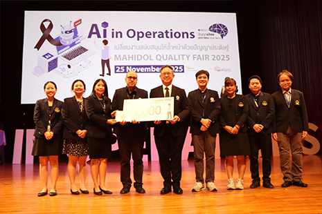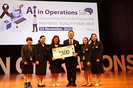 วันที่ 25 พฤศจิกายน 2568 รองศาสตราจารย์ ดร.เอมพร รตินธร คณบดีคณะพยาบาลศาสตร์ มหาวิทยาลัยมหิดล พร้อมด้วยผู้บริหาร คณาจารย์และบุคลากร เข้าร่วมงานมหกรรมคุณภาพ มหาวิทยาลัยมหิดล ประจำปี 2568 ภายใต้หัวข้อ “ Ai in Operation เปลี่ยนงานสนับสนุนให้ล้ำหน้าด้วยปัญญาประดิษฐ์ Mahidol Quality Fair 2025 ” ผ่านการนำเสนอผลงานคุณภาพในรูปแบบวาจาและในรูปแบบโปสเตอร์ ณ มหิดลสิทธาคาร มหาวิทยาลัยมหิดล และรูปแบบออนไลน์ผ่าน Mahidol University Digital KM