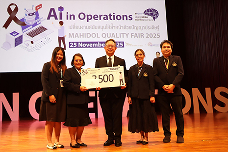 ในปีนี้คณะพยาบาลศาสตร์ มหาวิทยาลัยมหิดล ส่งผลงานพัฒนาคุณภาพงาน จำนวน 10 ผลงาน ได้รับรางวัล 5 รางวัล ได้แก่