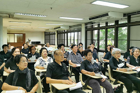 วันที่ 7 พฤศจิกายน 2568 โครงการส่งเสริมสุขภาพผู้สูงอายุ คณะพยาบาลศาสตร์ มหาวิทยาลัยมหิดล จัดกิจกรรม “เสียงใสวัยเก๋า ร้องเพลงประสานใจ” ณ ห้อง 4205–4207 อาคารหอพักคณะพยาบาลศาสตร์ หาวิทยาลัยมหิดล เพื่อส่งเสริมสุขภาพจิตและสร้างความสุขให้แก่สมาชิกโครงการผ่านกิจกรรมการขับร้องประสานเสียง ภายในกิจกรรมได้รับเกียรติจาก อาจารย์ ดร.ฤทธิ์ ทรัพย์สมบูรณ์ หัวหน้าโครงการฯ จากวิทยาลัยดุริยางคศิลป์ มหาวิทยาลัยมหิดล เป็นวิทยากร ให้ความรู้และนำสมาชิกผู้สูงอายุร่วมร้องเพลงอย่างสนุกสนานในบรรยากาศอบอุ่นและเป็นกันเอง กิจกรรมครั้งนี้มุ่งเน้นให้ผู้สูงอายุได้ผ่อนคลายความเครียด พบปะเพื่อนสมาชิก แลกเปลี่ยนความสุขผ่านเสียงเพลง สร้างมิตรภาพและเสริมสร้างสุขภาวะที่ดีทั้งทางกายและใจ