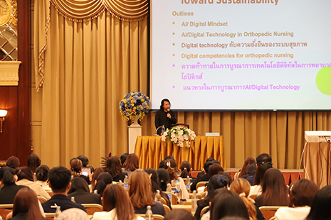 ทั้งนี้ รองศาสตราจารย์ ดร.เอมพร รตินธร ได้ให้เกียรติบรรยายพิเศษในหัวข้อ “AI/Digital Mindset in Orthopaedic Nursing Toward Sustainability” เพื่อถ่ายทอดและสะท้อนบทบาทผู้นำในการขับเคลื่อนองค์ความรู้ วิจัย และนวัตกรรมด้านการพยาบาลออร์โธปิดิกส์เพื่อยกระดับคุณภาพการดูแลผู้ป่วยอย่างยั่งยืน โดยเน้นย้ำความสำคัญของทัศนคติแบบดิจิทัลและบทบาทของเทคโนโลยีปัญญาประดิษฐ์ในการยกระดับการดูแลผู้ป่วยออร์โธปิดิกส์ให้สอดคล้องกับความก้าวหน้าทางวิทยาการ