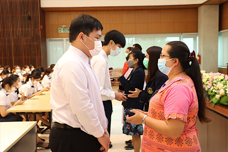 วันที่ 28 กันยายน 2565 งานพัฒนานักศึกษา คณะพยาบาลศาสตร์ มหาวิทยาลัยมหิดล ร่วมกับสโมสรนักศึกษาคณะพยาบาลศาสตร์ จัดกิจกรรม “พิธีผูกโบว์ไทสายสัมพันธ์น้องพี่” ให้แก่นักศึกษาหลักสูตรพยาบาลศาสตรบัณฑิต ชั้นปีที่ 1 ณ ห้องประชุมภัทรมหาราชการุณย์ คณะพยาบาลศาสตร์ ศาลายา โดยมี ผู้ช่วยศาสตราจารย์ธิราวรรณ เชื้อตาเล็ง รองคณบดีฝ่ายพัฒนานักศึกษา เป็นประธานกล่าวเปิดกิจกรรมและกล่าวให้โอวาทแก่นักศึกษา ซึ่งกิจกรรมในวันนี้ มีวัตถุประสงค์เพื่อปลูกฝังความมีระเบียบวินัยที่ดีในการแต่งกายชุดนักศึกษาและชุดพิธีการ แนะนำข้อประพฤติปฏิบัติตามระเบียบของคณะพยาบาลศาสตร์และมหาวิทยาลัยมหิดล เสริมสร้างความรัก ความภาคภูมิใจในสถาบัน และสร้างความสัมพันธ์อันดีระหว่างนักศึกษา รุ่นพี่รุ่นน้องและคณาจารย์ ทั้งนี้มีผู้บริหาร คณาจารย์ อาจารย์ที่ปรึกษาสโมสรนักศึกษาคณะพยาบาลศาสตร์ และอาจารย์ประจำชั้นนักศึกษาหลักสูตรพยาบาลศาสตรบัณฑิต ชั้นปีที่ 1 ได้เข้าร่วมกิจกรรมในครั้งนี้ด้วย และภายหลังเสร็จสิ้นพิธีผูกโบว์ไท นักศึกษาหลักสูตรพยาบาลศาสตรบัณฑิต ชั้นปีที่ 1 ได้ร่วมถวายสักการะพระบรมรูปสมเด็จพระมหิตลาธิเบศร อดุลยเดชวิกรม พระบรมราชชนก ณ บริเวณลานกิจกรรม ชั้น 1 คณะพยาบาลศาสตร์ ศาลายา
