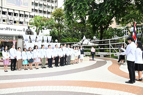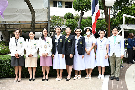 วันที่ 23 กันยายน 2568 รองศาสตราจารย์วีรยา จึงสมเจตไพศาล รองคณบดีฝ่ายบริหาร พร้อมด้วยรองศาสตราจารย์ยุวดี พงษ์สาระนันทกุล รองคณบดีฝ่ายการคลังและพัสดุ และผู้ช่วยศาสตราจารย์ ดร.รัตติมา ศิริโหราชัย หัวหน้าภาควิชาการพยาบาลศัลยศาสตร์ ร่วมเป็นผู้แทนคณะพยาบาลศาสตร์ มหาวิทยาลัยมหิดล เข้าร่วมพิธีปฏิญาณตนเบื้องหน้าสมเด็จพระมหิตลาธิเบศร อดุลยเดชวิกรม พระบรมราชชนก ในวันออกรับบริจาคใหญ่พร้อมกันทั่วกรุงเทพฯ และเขตปริมณฑล เนื่องในวันมหิดล ประจำปี 2568 โดยมีศาสตราจารย์ นพ.ธวัชชัย อัครวิพุธ รองคณบดี คนที่ 1 และผู้อำนวยการโรงเรียนแพทย์ศิริราช คณะแพทยศาสตร์ศิริราชพยาบาล มหาวิทยาลัยมหิดล เป็นประธานให้โอวาทแก่นักศึกษามหาวิทยาลัยมหิดล วิทยาเขตบางกอกน้อย ประกอบด้วย นักศึกษาคณะแพทยศาสตร์ศิริราชพยาบาล คณะพยาบาลศาสตร์ คณะเทคนิคการแพทย์ และคณะกายภาพบำบัด ที่ร่วมปฏิญาณตนในการบำเพ็ญตนเป็นประโยชน์เพื่อเผยแพร่เกียรติคุณของพระบาทสมเด็จพระบรมราชชนก และหารายได้ช่วยเหลือผู้ป่วยยากไร้ของโรงพยาบาลศิริราช ซึ่งจัดขึ้นเป็นประจำทุกปี ณ ลานพระราชานุสาวรีย์สมเด็จพระมหิตลาธิเบศร อดุลยเดชวิกรม พระบรมราชชนก โรงพยาบาลศิริราช