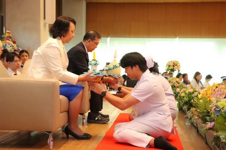 วันที่ 11 กันยายน 2568 คณะพยาบาลศาสตร์ มหาวิทยาลัยมหิดล โดย งานพัฒนานักศึกษาร่วมกับสโมสรนักศึกษาคณะพยาบาลศาสตร์ จัด “พิธีไหว้ครู ประจำปีการศึกษา 2568” เพื่อเป็นการน้อมรำลึกถึงพระคุณของคณาจารย์ อีกทั้งยังเป็นการแสดงออกถึงความเคารพ ความกตัญญูกตเวทีของนักศึกษาทุกหลักสูตรที่มีต่อคณาจารย์ผู้ประสิทธิ์ประสาทวิชา ซึ่งเป็นการส่งเสริมศิลปวัฒนธรรมไทยอันดีงามให้คงอยู่สืบทอดต่อไป โดยมี รองศาสตราจารย์ ดร.เอมพร รตินธร คณบดีคณะพยาบาลศาสตร์ มหาวิทยาลัยมหิดล เป็นประธานในพิธี พร้อมด้วยศาสตราจารย์ นพ.ธวัชชัย อัครวิพุธ รองคณบดี คนที่ 1 และผู้อำนวยการโรงเรียนแพทย์ศิริราช คณะแพทยศาสตร์ศิริราชพยาบาล มหาวิทยาลัยมหิดล พว.ธชพร เทศะศิลป์ หัวหน้าฝ่ายการพยาบาล โรงพยาบาลศิริราช และคณาจารย์ เข้าร่วมพิธี ภายหลังจากพิธีไหว้ครู คณบดีคณะพยาบาลศาสตร์ ได้มอบโล่รางวัล “อาจารย์ดีเด่น” สาขาความเป็นครู ให้กับ รองศาสตราจารย์ ดร.วไลลักษณ์ พุ่มพวง อาจารย์ประจำภาควิชาสุขภาพจิตและการพยาบาลจิตเวชศาสตร์ รางวัลอาจารย์ดีเด่น “สาขาวิจัย” ให้กับ อาจารย์ ดร.สืบสาน รักสกุลพิวัฒน์ อาจารย์ประจำภาควิชาการพยาบาลอายุรศาสตร์ และได้มอบรางวัล NS MAHIDOL Core Value Award ให้กับ นางสาวชมพูนุท ชำนาญ นายฟ้าประทาน เบ็ญฮาหมาด และนางสาวปุณยาพร วงศ์คำเหลา รางวัลการประกวดบทประพันธ์ร้อยแก้ว ร้อยกรอง และการประกวดพานไหว้ครูประเภทสร้างสรรค์ ประเภทสวยงาม โดยกิจกรรมดังกล่าวจัดขึ้น ณ ห้องประชุมภัทรมหาราชการุณย์ ชั้น 5 อาคารมหิดลอดุลยเดช - พระศรีนครินทร คณะพยาบาลศาสตร์ มหาวิทยาลัยมหิดล ศาลายา