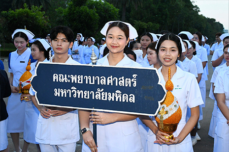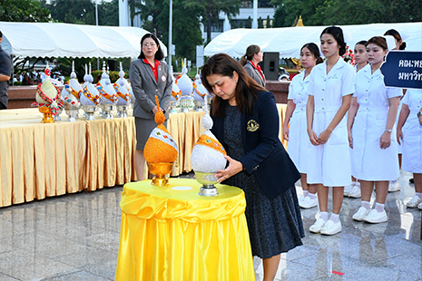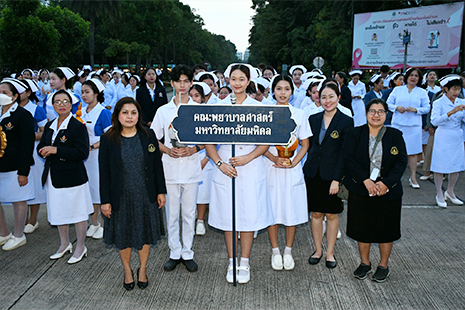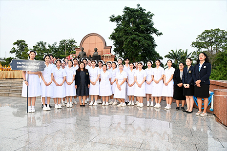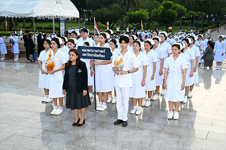วันอังคารที่ 21 ตุลาคม 2568 ผู้ช่วยศาสตราจารย์ธิราวรรณ เชื้อตาเล็ง รองคณบดีฝ่ายพัฒนานักศึกษา ได้นำตัวแทนนักศึกษาหลักสูตรพยาบาลศาสตรบัณฑิต เข้าร่วมพิธีวางพานพุ่มถวายราชสักการะสมเด็จพระศรีนครินทราบรมราชชนนี เนื่องในวันพยาบาลแห่งชาติ ประจำปี พ.ศ. 2568 ณ พระราชานุสาวรีย์สมเด็จพระมหิตลาธิเบศร อดุลยเดชวิกรม พระบรมราชชนก ประทับคู่สมเด็จพระศรีนครินทราบรมราชชนนี กระทรวงสาธารณสุข จังหวัดนนทบุรี เพื่อน้อมรำลึกในพระมหากรุณาธิคุณที่ทรงมีพระเมตตาต่อวิชาชีพการพยาบาลและการผดุงครรภ์ และเป็นการปลูกฝังค่านิยมองค์กรในด้าน Noble การสืบสานปณิธานให้กับนักศึกษาที่เข้าร่วมพิธีฯ
