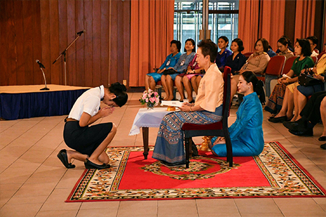 วันที่ 20 ตุลาคม 2568 ผู้ช่วยศาสตราจารย์ธิราวรรณ เชื้อตาเล็ง รองคณบดีฝ่ายพัฒนานักศึกษา พร้อมด้วย นายประกาศิต สงวนชาติ นักวิชาการศึกษา งานพัฒนานักศึกษา และนักศึกษาคณะพยาบาลศาสตร์ มหาวิทยาลัยมหิดล ได้ร่วมพิธีวางพวงมาลาถวายราชสักการะ พระบรมราชินยานุสาวรีย์ สมเด็จพระศรีพัชรินทรา บรมราชินีนาถ และเข้าร่วมพิธีมอบทุนสมเด็จพระศรีพัชรินทรา บรมราชินีนาถ ประจำปีการศึกษา 2568 โดยนักศึกษาชั้นปีที่ 4 คณะพยาบาลศาสตร์ มหาวิทยาลัยมหิดลที่ได้รับทุนฯ จำนวน 2 คน ได้แก่ นางสาวจิญาภา เข็มสุวรรณ และนางสาวมณีพร วันดี ซึ่งโอกาสนี้นางสาวจิญาภา เข็มสุวรรณ เป็นผู้แทนนักศึกษาระดับอุดมศึกษา กล่าวสำนึกในพระมหากรุณาธิคุณ สมเด็จพระศรีพัชรินทรา บรมราชินีนาถ พิธีดังกล่าวจัดขึ้น ณ ห้องประชุมอาคารสว่างวัฒนา โรงเรียนราชินี ถนนมหาราช กรุงเทพมหานคร"